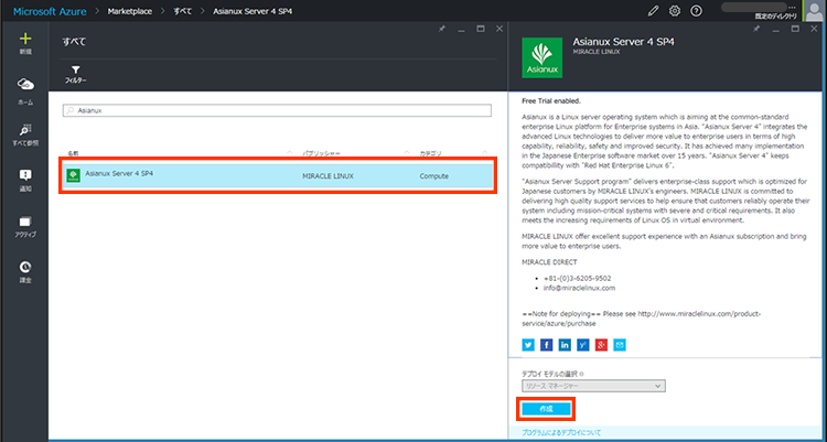 無料評価版 Asianux Server on Microsoft Azureの操作手順21