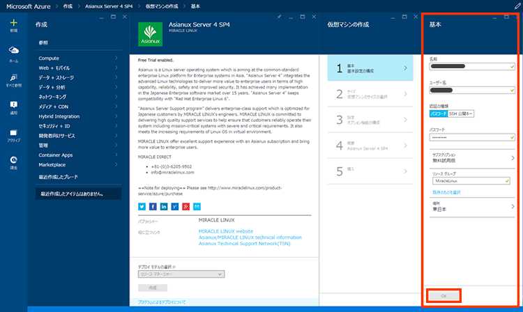 無料評価版 Asianux Server on Microsoft Azureの操作手順22
