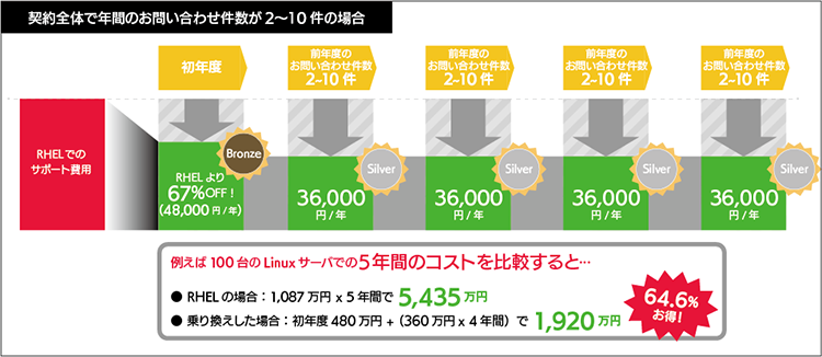 契約全体での年間のお問い合わせ件数が2〜10件以内の場合