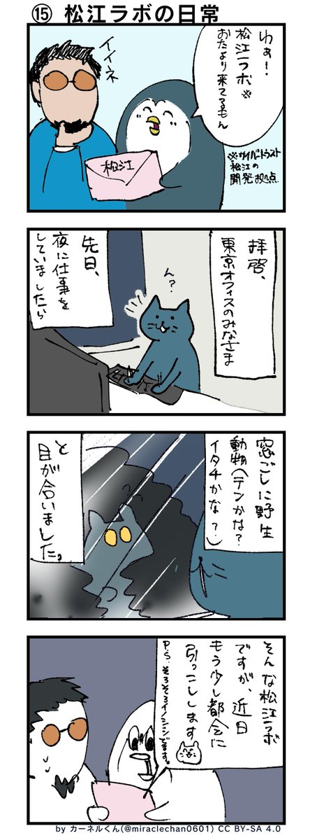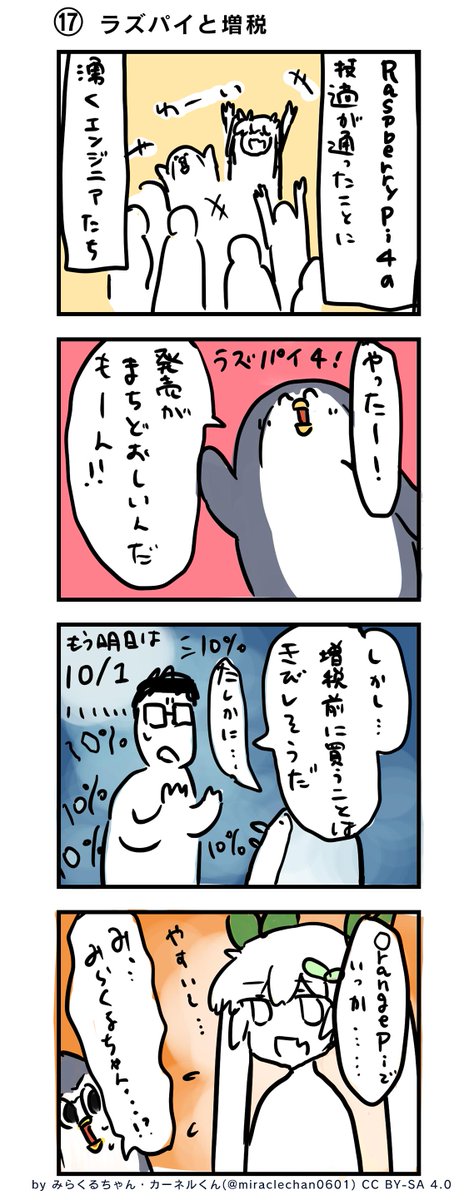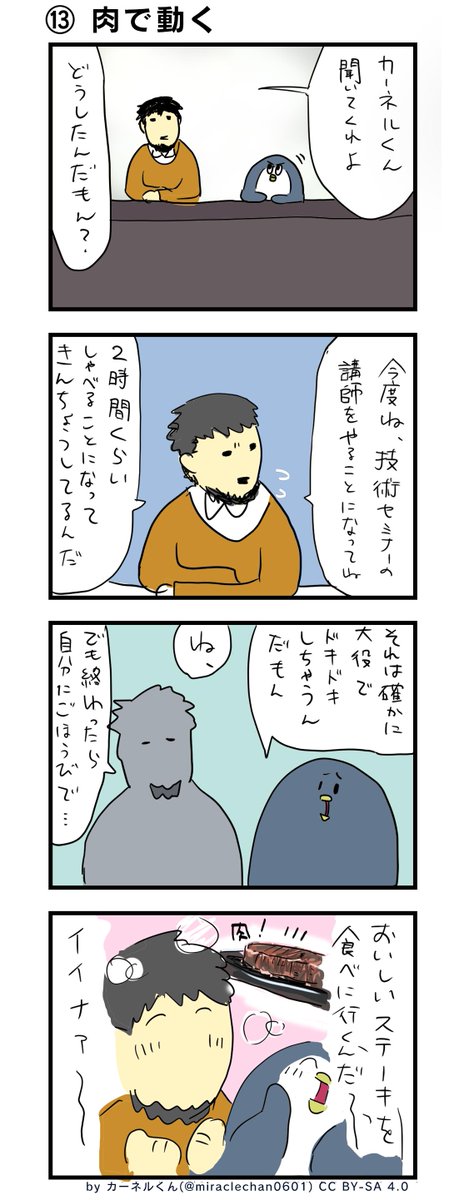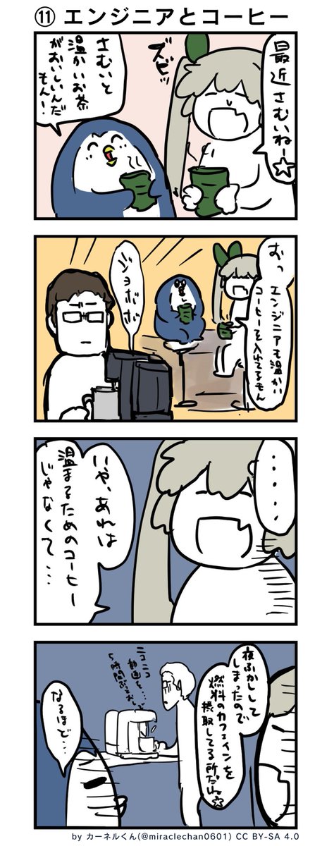 Twitter で不定期連載しているみらくるちゃん & カーネルくんの4コマ漫画です。