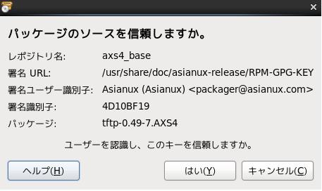 GUI ツールの使用方法:パッケージのソース信頼確認