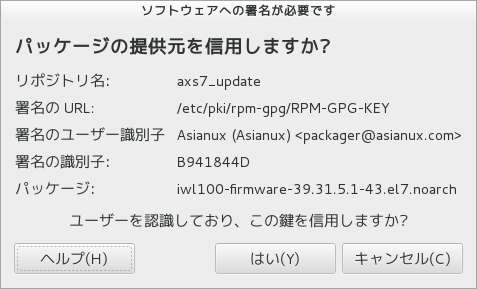 GUI ツールの使用方法:パッケージのソース信頼確認