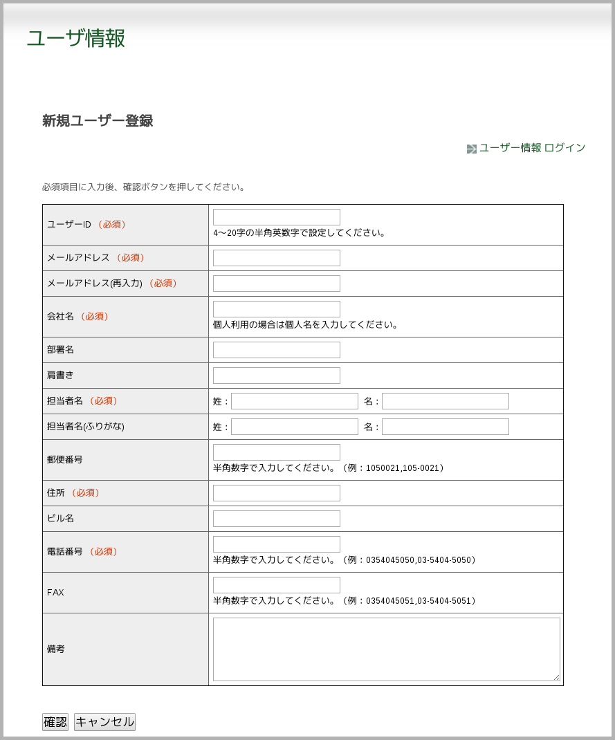 現在位置: ホーム / その他の製品サポート情報 / サポート用画像フォルダ / ユーザー登録 情報入力