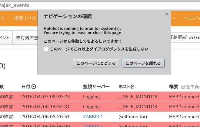 ページクローズの確認ダイアログ