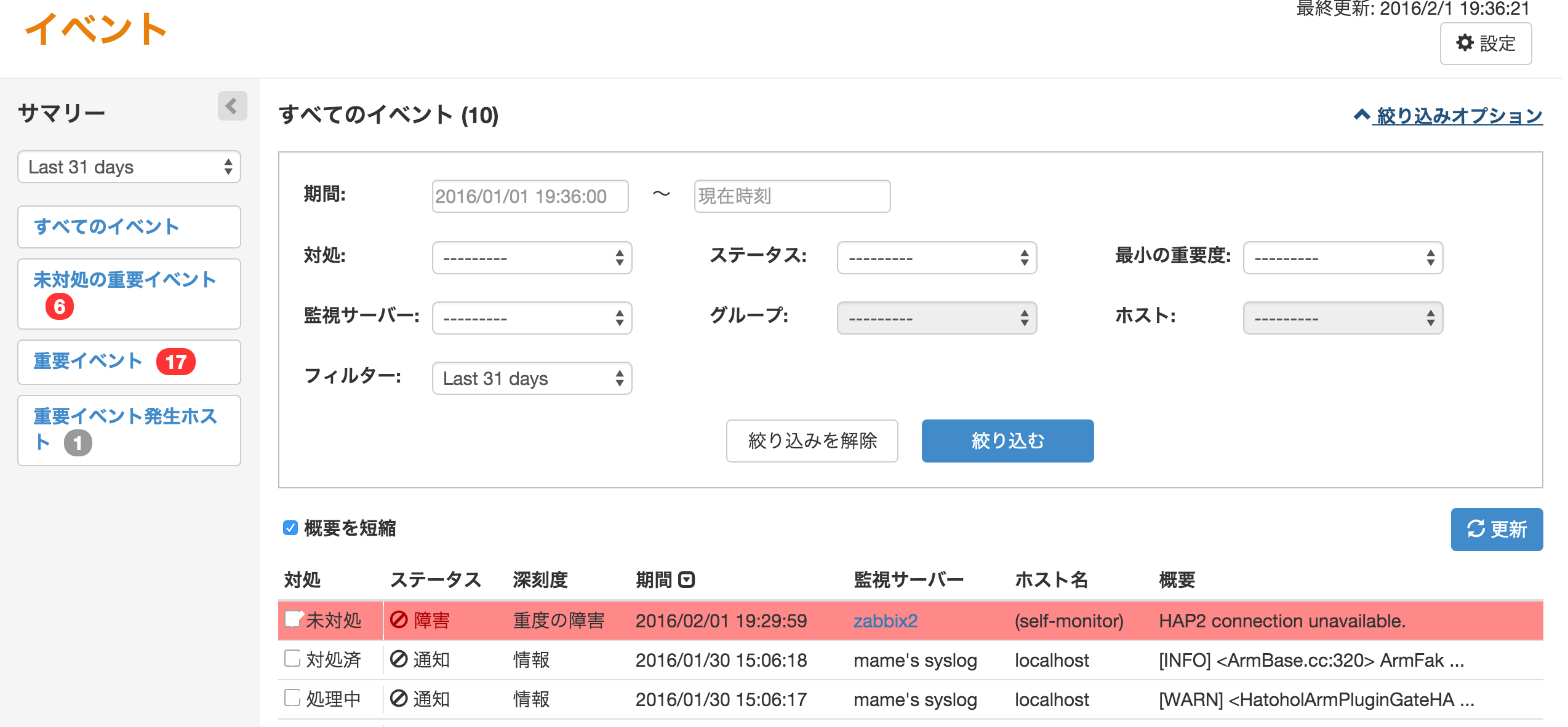 Hatohol 16.01 EventUIの絞込を開く