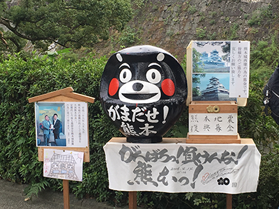 熊本城前のメッセージ